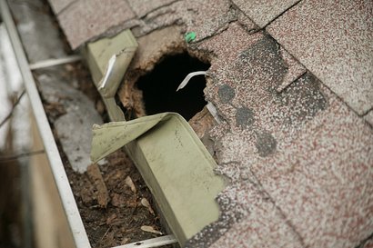 Local Wildlife such as Squirrels and Raccoons commonly frequent rooftops, causing further damage to these vulnerable areas in effort to gain access. This is a common scenario for pregnant female Raccoon or Squirrel seeking safe and warm shelter inside your attic to raise their new born Kits. Unfortunately, the damages they create will lead to greater leaks and water damages inside your Home if not repaired as soon as possible.